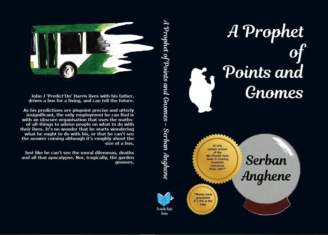As his predictions are pinpoint precise and utterly insignificant, the only employment he can find is with an obscure organisation that uses the maths-of-all-things to advise people on what to do with their lives. It’s no wonder that he starts wondering what he ought to do with his, or that he can’t see the answer coming although it’s roughly about the size of a bus.